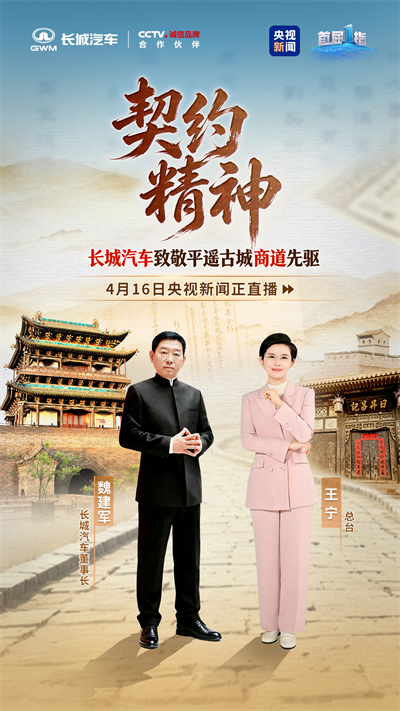 平遥,这座屹立于晋中平原的千年古城,用两百年的票号传奇见证了中国现代金融的萌芽,沉淀下信义、担当、严谨、本分与守望相助的商道内核。4月16日,央视《首屈一指》特别直播节目走进平遥,长城汽车董事长魏建军与知名主持人王宁、平遥商道研究专家郝新喜等人展开了一场跨越时空的商道对话。在这场关于信用传承与实业本分的精神奔赴中,长城汽车溯源而上,以“致敬平遥契约精神”为主题,将平遥的信义底色融入现代工业实践。从一张汇票的“见票即兑”到一台汽车的“说到做到”,长城汽车正开启中国品牌与商业文明共生共荣的新征程。