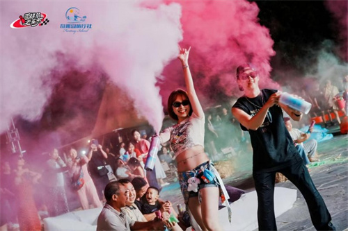 互动游戏区创造了全龄友好的公共空间。轮胎保龄球区,老人推着婴儿车看孩子玩;超级高尔夫果岭上,中年人和年轻人同场PK;记忆赛道前,车迷和初学者互相切磋。傍晚的七彩泡泡泼水水枪电音派对,则让不同年龄段的观众在同一片广场上共享欢乐。一位阿姨笑着说:“本来只是出来散步,结果被泡泡吸引了,跟着蹦跶了好久。”