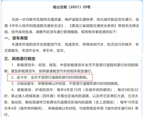 多省多地皮卡解禁 助力市场扩容 让皮卡流行起来 2021-12-04 【导读】12月20日起,皮卡在哈尔滨全市解禁,可自由通行主城区;郑州也放宽达标皮卡在四环内的通行限制;无锡市号牌的皮卡在提前申请了长期通行单后,便可在规定时间自由通行相应区域。这证明,皮卡的多用途身份得到 [详情]