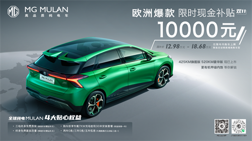 欧洲首月销量破万,全球热销超2万!欧洲销冠MG MULAN推限时现金万元补贴 2022-11-10 【导读】11月9日,MG推出“欧洲销冠 限时现金万元补贴”活动,即日起至用户购买MG MULAN并在年内完成上牌,可享10000元增换购补贴。与此同时,MG MULAN新推425km旗舰版和520km豪华版两款车型 [详情]