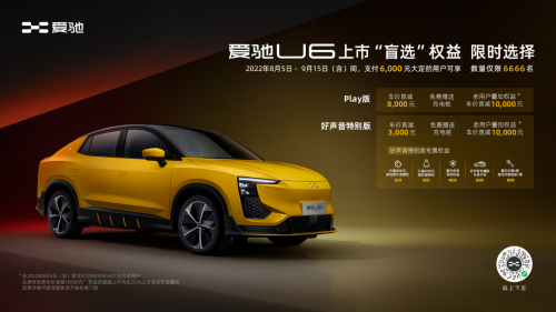 亮相《2022中国好声音》 爱驰U6 Play版和好声音特别版“盲选”权益公布 2022-08-05 【导读】8月5日晚,爱驰旗下第二款量产车型爱驰U6将以“纯电新玩家”身份正式亮相《2022中国好声音》,凭借独特魅力助推学员演绎天籁之音。同一天,爱驰全新发布U6 Play版和好声音特别版“盲选”权益,向爱驰新老用户 [详情]
