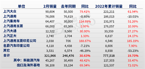 上汽集团2月销量同比增长三成,上汽大众再现高增长态势 2022-03-07 【导读】日前,上汽集团公布了2022年2月产销快报。数据显示,其2月整车销量为32.2万辆,同比增长30.6%,其中,新能源和海外销量分别增长48.42%和69.34%,表现仍然强劲。 [详情]