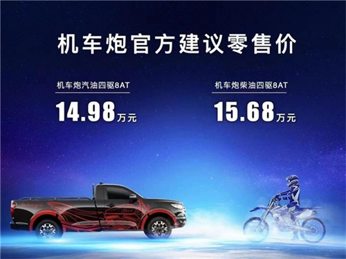 机车与炮 天生一对 机车与炮相聚川渝 2022-02-26 【导读】近日由长城炮与机车圈层共创打造的机车炮合伙人共创大会在成都、重庆成功举办。机车炮汽油四驱8AT售价为14.98万元、柴油四驱8AT售价为15.68万元。大会上,多家机车俱乐部和媒体正式成为机车炮合伙人。 [详情]