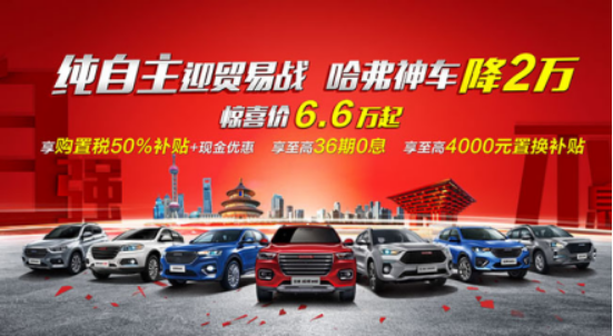 哈弗神车岁末钜惠让利,享购置税减半政策,最高优惠2.4万 2018-11-16 【导读】11月16日,哈弗品牌携强大参展阵容亮相第十六届广州车展。在此次车展上,哈弗品牌两款新车型全新哈弗H6冠军版和哈弗H4智联版正式上市, [详情]