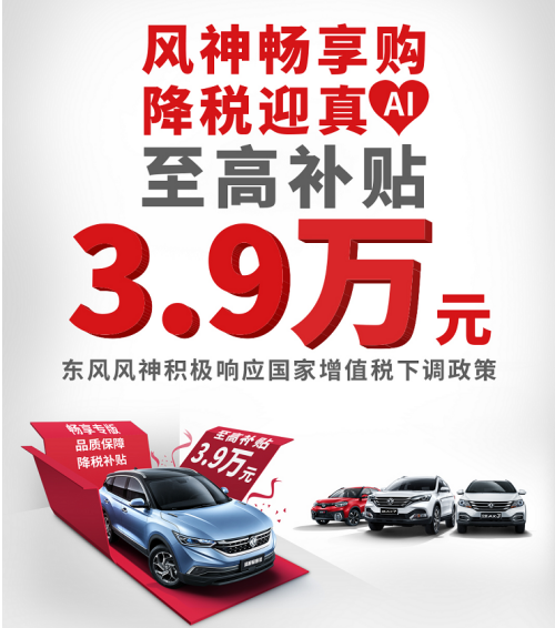 东风风神降税畅享购 至高补贴3.9万元 2019-04-02 【导读】东风风神宣布自4月1日起,针对旗下全新一代AX7、经典AX7、AX4、全新AX3在内4款在售车型,推出“风神畅享购 降税迎真AI”优惠补贴购车活动,让消费者切真享受到降税红利。 [详情]