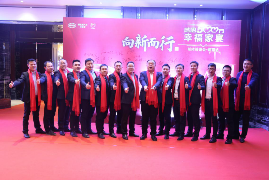 向新而行 比亚迪感恩500万·幸福家宴 河南地区媒体答谢会圆满举办 2019-01-20 【导读】2019年1月19日,“感恩500万·幸福家宴” 比亚迪媒体答谢会河南站在郑州黄河迎宾馆隆重举行。河南50余家主流媒体莅临现场,与比亚迪厂家领导及当地经销商代表、车主朋友欢聚一堂,回首过去,展望未共叙情谊。 [详情]