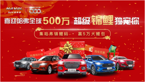 喜迎全球500万!哈弗超级锦鲤独宠你 2018-12-27 【导读】为喜迎全球500万荣耀时刻的到来,哈弗品牌以实际行动感恩回馈每一位用户的支持,在12月27日正式开启“喜迎哈弗全球500万 超级锦鲤独宠你”的活动,只要参与即可免费兑换幸运大礼,更有机会赢取价值5万的大鲤 [详情]