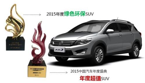 如同“大哥”东风风神AX7一样,东风风神AX3自上市后也如“黑马”一般,驰骋于SUV市场。上市仅两周,订单就突破3000个,东风风神武汉工厂为此不得不加班加点赶生产。这款为年轻人群打造的“大+”SUV,在1月份分别获得了“2015中国汽车年度盛典年度超值SUV”及“2015年度绿色环保小型SUV”奖项。