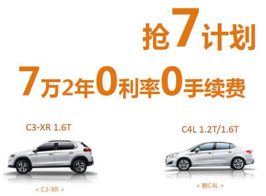 C3-XR 1.6T和C4L1.2T/1.6T车型7万元定额贷,并享2年0利率0手续费