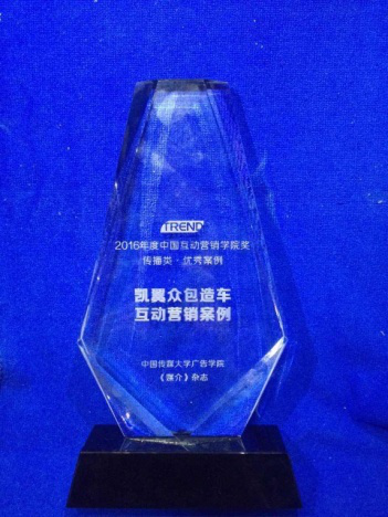 从正式上线到作品征集、评选,凯翼众包第二季一直是镁光灯下的焦点,也是各大媒体的“宠儿”, 由NDIMedia新动自媒体联盟主办的2016年自媒体年度汽车奖项评选中,凯翼汽车更是凭借众包造车项目荣膺“年度创新车企大奖”,作为年轻的自主品牌,凯翼探索创新的企业文化,积极拥抱互联网的品牌精神引人关注,以“人”为核心,串联用户、经销商、合作伙伴、企业员工四位一体的营销态度,体现其“创新”的企业文化。正是这份在“创新”路上的坚持,让凯翼这个年轻的品牌短期内脱颖而出,并获广泛关注。