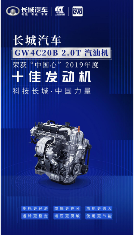 11月4日,长城汽车GW4C20B 2.0T汽油机成功入选“中国心”2019年度十佳发动机,这也是长城汽车第六次斩获该项殊荣。作为国内少数完全掌握了汽车发动机、变速箱等核心技术的汽车企业,此番登榜不仅印证了长城汽车在动力总成上的强悍实力,也寓意着中国汽车产业在核心技术领域取得新的突破。