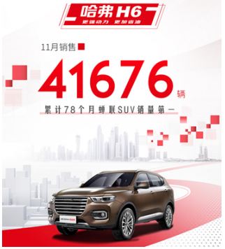 令中国人骄傲的还不止华为,在汽车领域,作为SUV行业的领导品牌,哈弗11月销量再创新高,总销量达到83378辆,国民神车哈弗H6更是一举斩获41676辆,累计78个月荣登销冠之位,单车销量即将突破300万,创造了中国SUV“火箭速度”,足以令途观/CR-V自愧不如。