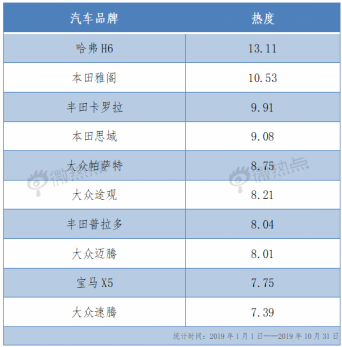 要说中国最火的车是谁,猜想大部分用户会投大众一票。但从实际数据看,让人不敢相信。近日,新浪微博旗下的微热点发布数据统计,自2019年1月1日-10月31日,在售3000多个车型中,在用户心目中地位崇高的大众非但没有排名第一,甚至前三名都没进去。
