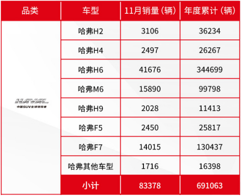 2019年的车市注定不平凡,在过去的11个月,起伏动荡成为了关键词,据乘联会数据显示,1-11月国内狭义乘用车市场累计销量达1856.3万辆,同比下降7.9%。面对如此局面,诸多车企陷入困局,而哈弗却实现了逆市上扬,11月,哈弗品牌销量达到83,378辆,旗下哈弗H6、哈弗H9-2020款、哈弗M6以及F7等车型,均展现强悍实力。