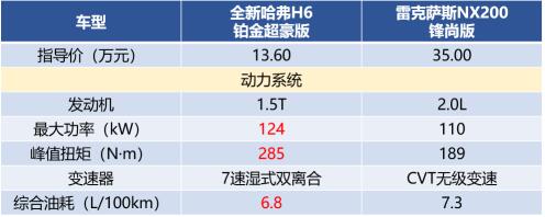 在一部分人的固有观念中,自主品牌在动力方面要落后于德系、日系,但实际结果却未必如此。通过动力对比不难发现,全新哈弗H6铂金版无论动力、油耗,都完爆雷克萨斯NX200。