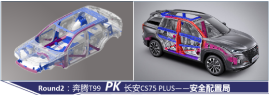 奔腾T99尊享型及以上车型整车6安全气囊,前排更配备双安全气囊,座椅侧气囊,侧面双侧气帘,有效的保护驾乘人员的安全。同样长安CS75 PLUS前后排均配备安全气囊,前后排成员100%头部覆盖侧气帘、肩胸腹一体式侧气囊组成全方位的碰撞防护矩阵。两款车在安全气囊方面都很完善,足够为驾乘者提供基本的安全行车保障。