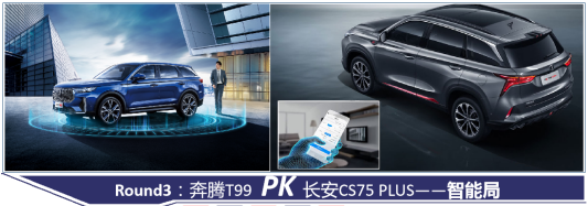 长安CS75 PLUS在本次智能对比中并不突出,智能配置没有太多亮点。但长安CS75 PLUS配备的液晶屏和奔腾T99的尺寸相同,同样达到了12.3英寸,还有全液晶仪表盘、手机蓝牙钥匙、L2级智能驾驶辅助系统以及遥控自动泊车系统的加入也使得科技感大幅提升。