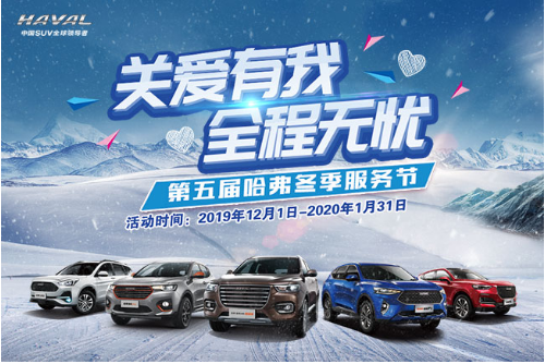 除了最大尺度的优惠政策外,哈弗还在服务方面展现贴心优势。目前,“关爱有我·全程无忧”第五届哈弗冬季服务节正在火热进行中,在“爱车守护”、“无微呵护”、“一路随心”三大主题之下,让用户可以享受到免费洗车、数字化车辆健诊、百公里免费救援、参与活动赢好礼等诸多贴心服务。该活动将持续到大年初七,这份无微不至的呵护将伴您一起过春节。
