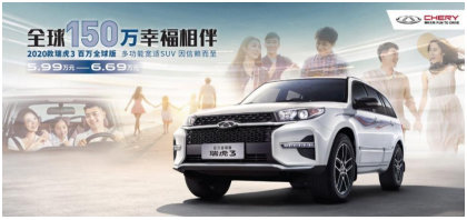 随着人们生活水平和消费能力的提高,越来越多的人选择自驾回家,选择一款超强综合实力的SUV车型,不仅帮你避免“拥挤到哭”的春运,还能让你以极高的性价比,获得超强的幸福感。今天就给大家推荐一款既有面子又实惠,适合开着回家过年的5万元级SUV车型——2020款瑞虎3 百万全球版,让你归乡倍儿有面子,成为全村最闪亮的那个仔。