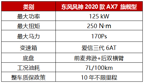 那么,单从产品方面来看,东风风神2020款AX7 AI旗舰型(13.39万元,简称2020款AX7)在动力、外观、智能、配置方面的实力究竟如何。