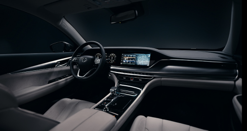 打开车门,就会被其环抱式座舱所吸引,家族化的横向展翼式仪表板布局,饰条贯穿其中,如行云流水般流畅舒展,且与外饰凌云翼格栅相呼应,给人一种中正、霸气的感受,不仅凸显内饰空间的宽阔和优雅,也营造出宾至如归的大气格局和从容不迫的领袖气质。
