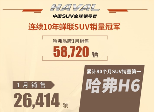 众所周知,哈弗H6全球累计销量已正式突破300万辆,成为率先达成这一壮举的中国品牌SUV车型,2020年伊始,哈弗H6更是月销26414辆,累计第80个月斩获细分市场销冠,而这绝对离不开广大用户的鼎力支持。
