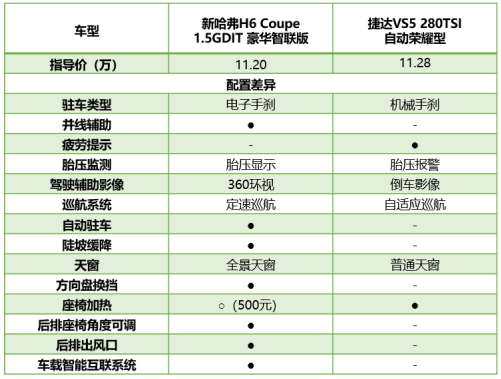 配置:新H6 Coupe功能丰富高端前卫,捷达VS5功能普通不敌前者