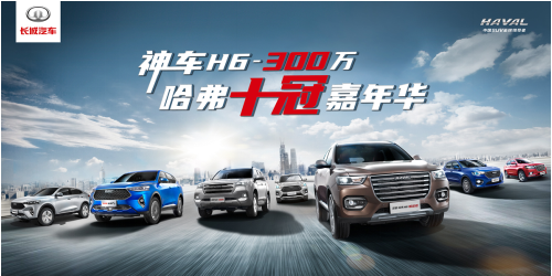 值得一提的是,2019年底,哈弗H6全球销量已正式突破300万辆大关,成为中国品牌首款达成此项成就的SUV车型。近期为共贺佳绩,哈弗特推出主题为“神车H6 300万 哈弗十冠嘉年华”的直播盛典月系列活动,回馈广大用户的信赖与支持。