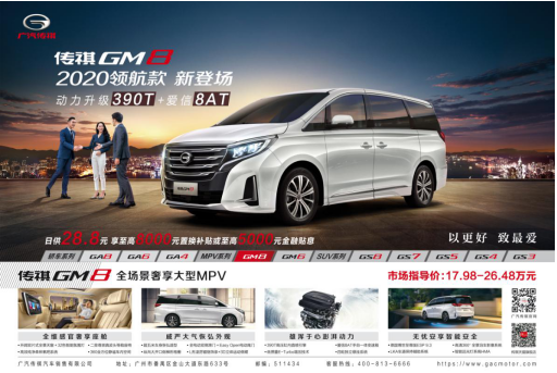 另外,从5月1日起,广汽传祺为全国消费者推出新一轮的优惠好礼,传祺GM8 2020领航款市场指导价17.98万元起,超级0首付,融车融税融保险,可享3年0息,最高送3年交强险和百万驾意险;购车免费升级车规级CN95高效空调滤芯;抗疫人员尊享至高5000元爱心补贴,以十足的诚意,为消费者带来更实在的优惠,现在入手传祺GM8 2020领航款正当时,千万别错过哦!