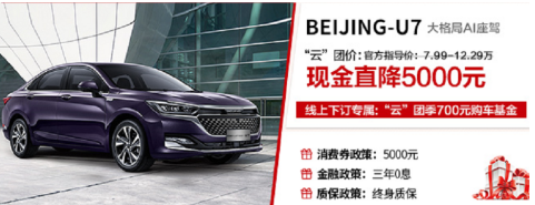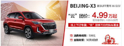 除了以上超值权益,活动期间,购买BEIJING汽车旗下任一款车型均有不同程度的优惠:“行政级高品质纯电座驾”BEIJING-EU7,云团价15.99万元起;A级纯电动销量冠军BEIJING-EU5,最低仅需12.99万元;10万级精品纯电SUV BEIJING-EX3,现金直降8000元;“新BUFF青年AI-SUV”BEIJING-X3,入手仅需4.99万元;“大格局AI座驾”BEIJING-U7现金直降5000元……优惠力度空前,堪称年度最佳入手时机。