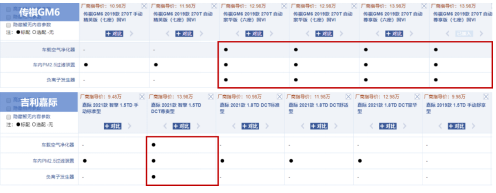 继传祺GM6之后,2021款嘉际也加强了对于空气净化系统的配置,但目前仅顶配车型具备全套空气净化系统,其他车型仅有一种PM2.5过滤装置,这一点上显然嘉际的考虑有些不足。