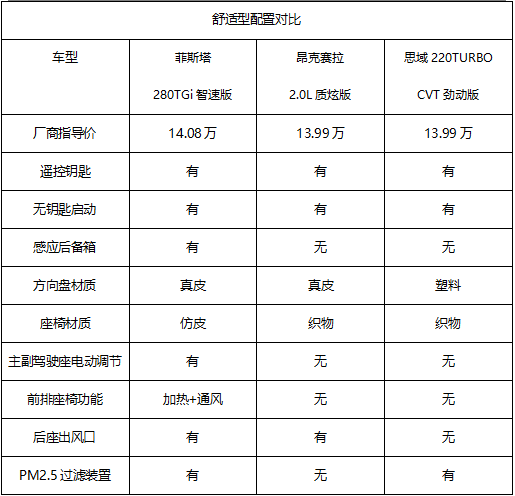 进入盛夏,在高气温的环境下开车容易疲劳,使驾驶员的注意力降低,产生安全隐患。如果车辆配备了便捷的智能操作与安全系统,无疑会减轻驾车疲劳感,大大降低行车风险。下面,我们就以思域220TURBO CVT劲动版(厂商指导价13.99万)、昂克赛拉新增的2.0L质炫版(厂商指导价13.99万)、菲斯塔280TGi智速版(厂商指导价14.08万)为例,比较一下谁才是安全最优选。