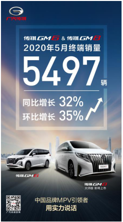 所谓“大浪淘沙”,在疫情下汽车市场的动荡中,真正满足消费者当下需求且实力强劲的产品可以在洗牌中浮至上游,销量就是最好的印证。5月最新销量数据显示,广汽传祺旗下两款MPV车型——传祺GM8、传祺GM6终端销量共计5497辆,同比增长32%,环比增长35%;其中,GM8终端销售2300辆,GM6终端销售3197辆,实力担纲“中国品牌MPV引领者”。即使在1-4月份车市最冷淡时期,GM8、GM6也分别在全国69个城市、59个城市市占率领先,称霸各自级别的细分市场。