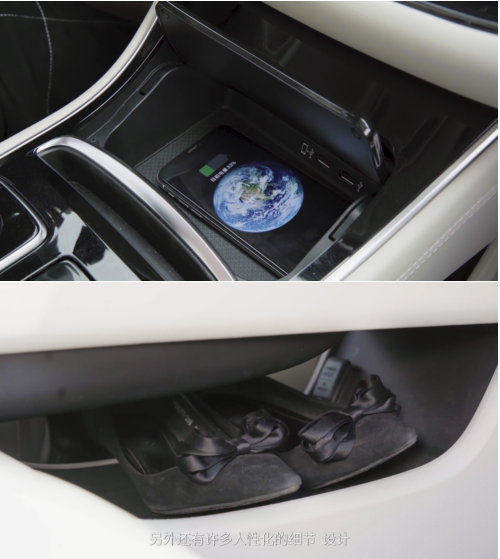 另外,全新一代传祺GA6还有很多人性化的设计、细节,非常实用。例如手机无线充电功能、前后排双USB接口、音响音量随车速调节功能、双区自动恒温空调等等。特别是中控台下方专门设计的储物台,可以用来放置高跟鞋等物品。对于职业女性来说,这一设计十分便利和贴心。