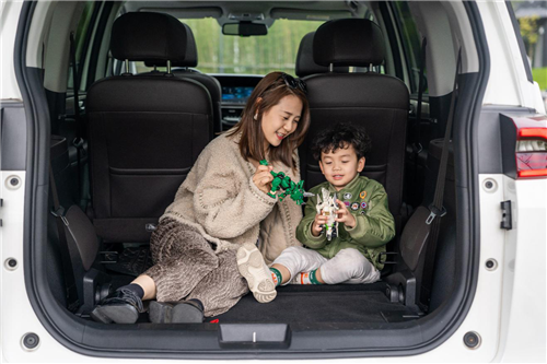 一些MPV车型为了能保证第三排有够用的乘坐空间,往往会对后备箱有所牺牲。比如嘉际,七座状态下,后备箱空间几乎没有。如果一家七口想要同时出门,那必须要提前把行李寄出去才行。但传祺GM6不会,它的空间设计更为巧妙,后备箱采用了向下掏空的设计,在七座状态下,仍然可以容纳4个20寸拉杆箱。如果有更大的载物需求时,可以将第三排座椅翻转后向下放置,后备箱就可以形成一个非常平整的平面,不仅能够容纳14个20寸拉杆箱,还可以在旅途疲劳时充当可以休息的床,非常的实用方便。