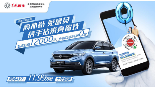 进入7月,为了让广大消费者可以更轻松地拥有高品质的汽车生活,东风风神为还针对AX7推出了多项重磅金融政策,包括至高12000元的金融购车贴息等,“高补贴、免息贷”的金融服务,消费者甚至可以根据自己的实际情况和需求,选择诸如0息贷、包牌贷、季度贷等多种购车金融方案,自由选择还款模式,畅快无忧购车。以特别推出24期0利息的“0息贷”优惠政策为例,用户只需三成首付加一张身份证,就能不花一分利息钱把车“贷”回家。对于首付预算有限的车主,通过办理“包牌贷”,包牌包税包保险之后,最低只需1万块就能把车开走,而每天利息不过一包烟钱。即便收入不稳定也不是事,选择“季度贷”三个月才还一次款,可以放心等待回款后再还款,再也不用担心无法按时还贷而影响征信记录了!多种购车方案,总有一款适合您。