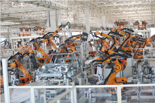 以车身车间为例,各生产线上的智能机器人协同工作,轻松完成白车身的焊接、定型等工序,并可实现24小时全自动作业,不愧为世界上最先进的高端智能“黑灯工厂”。