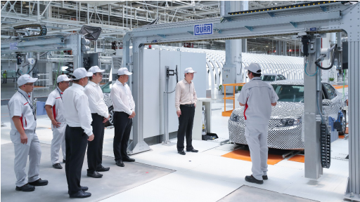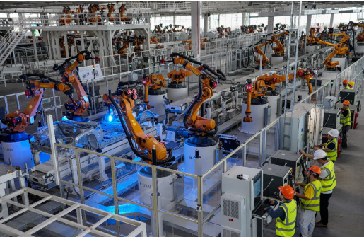若你走进最近亮相的恒大汽车上海、广州生产基地,就能看到机械臂快速运转的全自动生产线、灵活有序的智能机器人正在娴熟地进行各项作业……满满黑科技,让不少人忍不住惊叹。连前去视察的许家印都连连称赞:“今天看到我们建设的世界最先进的装备、世界最先进的工艺、世界最先进的智能制造汽车生产基地,我很开心、很高兴。”