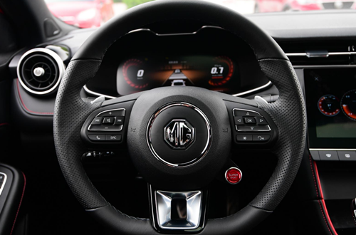 看到第三代名爵6的时候,第一眼就能感受到“战意”。整车呈强劲运动轿跑姿态,配合经典溜背造型和掀背尾门,战斗气息扑面而来。全新的数字燃动格栅、LED数字光轨大灯、LED粒子流尾灯,搭配18寸冰刃轮毂、红色卡钳、立体悬浮大尾翼等组成的G-Force空气动力套件,让第三代名爵6充分体验了竞速美学的高级感。