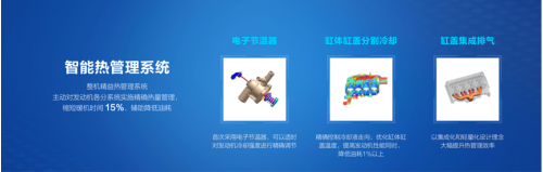 新发动机采用了整机精益智能热管理技术,缩短暖机时间15%以上,能更快进入最佳工作状态,改善了油耗。首次采用的电控节温器能够主动控制冷却循环系统的工作模式和流量,同时缸体缸盖采用独立冷却管路,精确调节,提升动力性并降低了油耗。相对于上一代产品,骁云1.5TI发动机燃效提升了12%,油耗降低了15%。