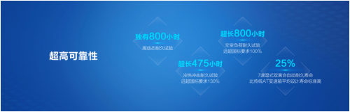 与之配合的7速双离合变速器耐久寿命也比传统AT变速器平均设计寿命标准高出25%。两相结合,骁云1.5TI动力总成为用户提供了绝佳的可靠性保证,绝不让车掉链子,保证了车主随时随地的高质量出行。