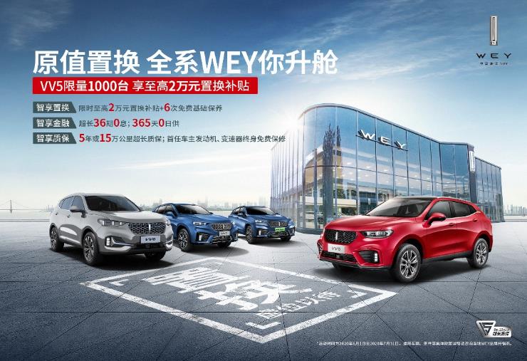 WEY VV5初心始于用户,致力将“自由”带给更多年轻消费者。针对年轻人的前期购车压力与后期费用支出,VV5推出“原值置换,全系WEY你升舱”政策,涵盖至高2万元置换补贴、至高1.2万元金融贴息、6次免费基础保养、双超质保等诚意政策,在全汽车生命周期内,令年轻车主得到全维经济支持,生活自由。