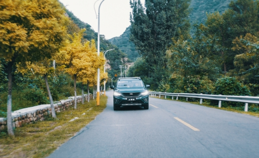 现在是初秋时节,路上的树叶已经开始变黄了。深深浅浅的红色、黄色点缀,让枯燥的长途驾驶也变得可爱起来。