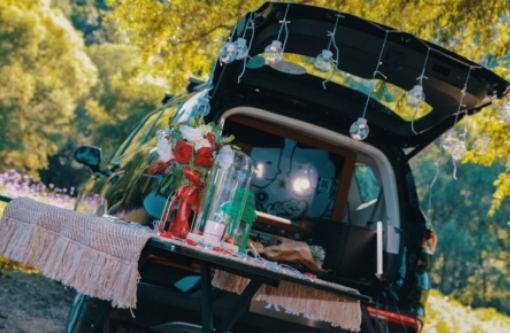 为了能营造出浪漫得气氛,男友还把豪越整个后备箱都改装成了橱窗模式,感觉开到市集路口,打开后备箱就能开始“地摊”营业了,超级方便实用。