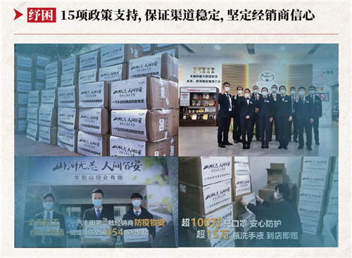 这是一支心手相牵,互相理解的队伍。面对新冠疫情,一汽丰田展示出了守望相助,命运相连的共同体意识,其充分理解经销商困难,以纾困为关键词,通过关键防疫物资支持、四项资金扶持、营销全力支持、五项考核松绑等四个层面的15项政策支持,保证了渠道稳定,坚定了渠道信心。