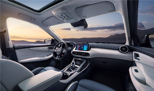 MG领航开创全感官沉浸座舱新体验,“星际飞梭”主题座舱,具备战机风格电子档杆、凌空银翼副驾把手等,配合BOSE音响、巨幕全景天窗、双液晶大屏等越级配置,满足年轻人审美与品质享受的高要求。