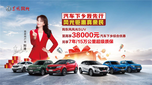 对于始终坚持“亲民车”品牌定位的东风风光而言,此次新一轮汽车下乡浪潮即将来袭之际,东风风光率先推出SUV产品汽车下乡至高38000元综合优惠,再一次提升了风光SUV家族的产品质价比,计划在年底购车的用户不妨到全国各地东风风光4S店品鉴选购。