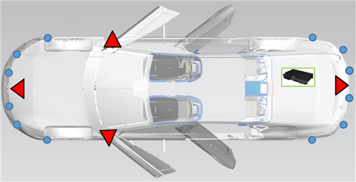 汉车型APA自动泊车辅助系统由8颗短距离超声波探头+4颗长距离超声波探头+4颗高清全景摄像头+1个控制器组成。