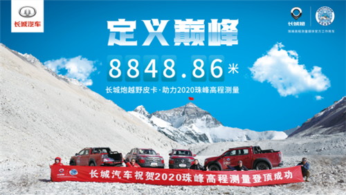 2020年12月8日,国家正式公布珠穆朗玛峰最新高程——8848.86米。这标志着国家测量登山队的2020珠峰高程测量任务圆满完成。我们首先要向参加此次登山测量任务的攀登者致敬,是他们的勇气与毅力让五星红旗再次闪耀地球之巅。作为本次任务的媒体官方工作用车,长城炮秉承科学精神和攀登者精神,全程高光表现,勇于担当、无畏向前,以中国品牌实力保障国家任务圆满成功。