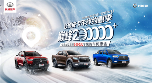 不仅如此,为了回馈客户,易车将于12月9日19点进行长城皮卡专场直播,天猫长城官方旗舰店将于13日15点进行直播,在线观看将有机会获得2000元越野礼包等大奖,敬请关注。